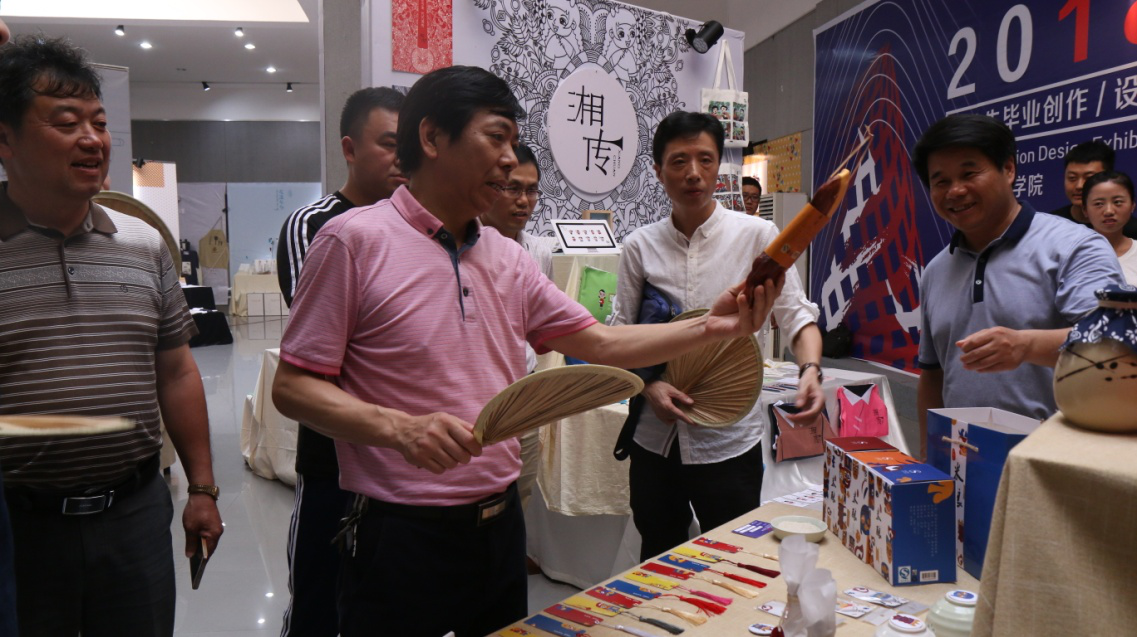 郭书记对本届视觉传达毕业作品的选题和创作给予了充分的肯定。他指出,学生作品选题能结合本土文化特色,非常接地气,体现了师生的专业水平和能力。同时,郭书记对学院的老师提出两点建议:一是要走出去,多学习和借鉴其他艺术类高校的设计理念,开拓视野。二是要沉下去,要多深入娄底及周边地区,通过实地调研、考察,掌握第一手资料,体验乡土文化,提炼乡土特色,使设计作品真正接地气、有活力。