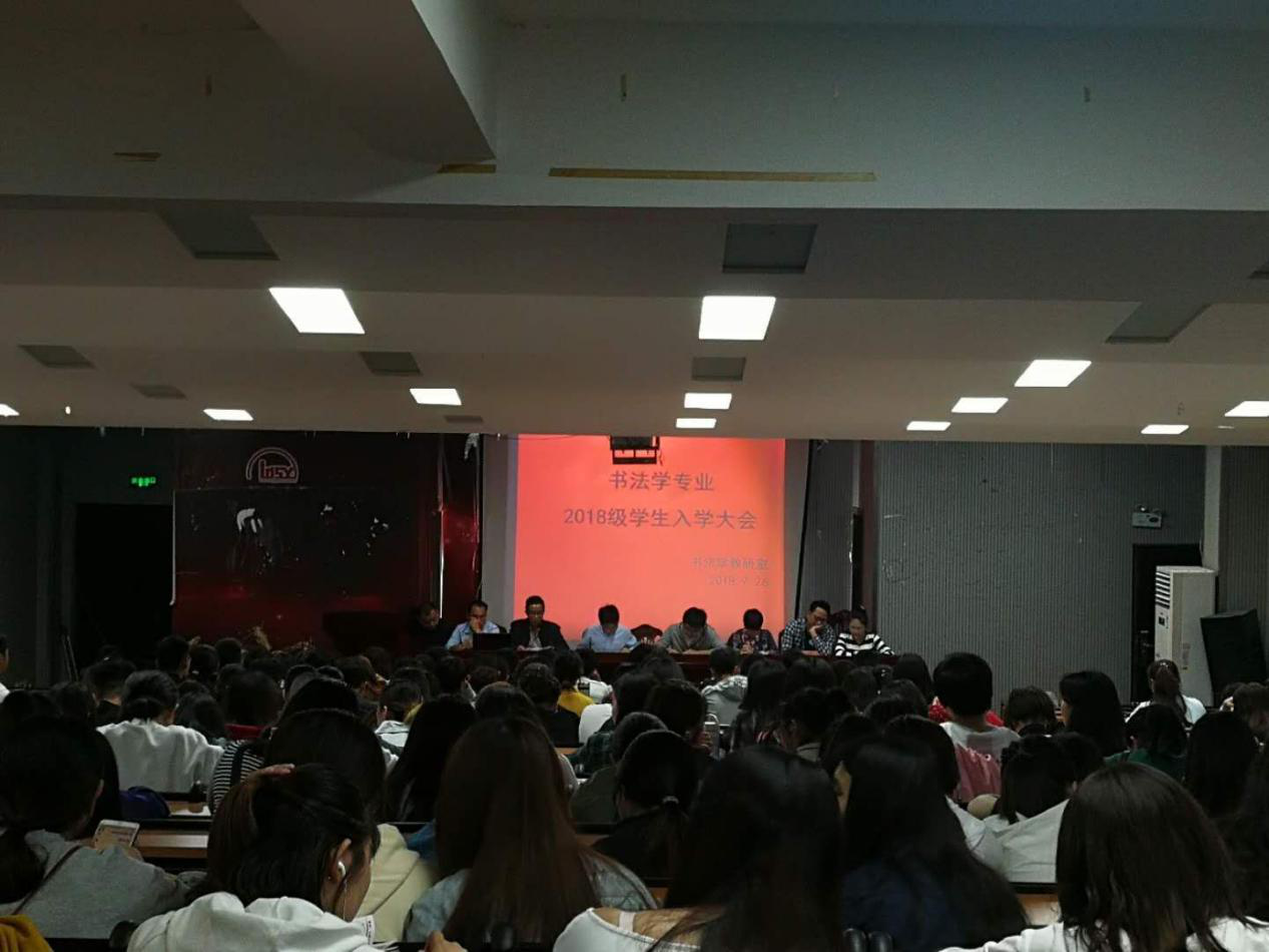9月26日晚,书法学教研室在一楼报告厅举行2018级新生入学大会。教研室老师及2018级、2016级、2015级书法学专业全体学生参加了会议。