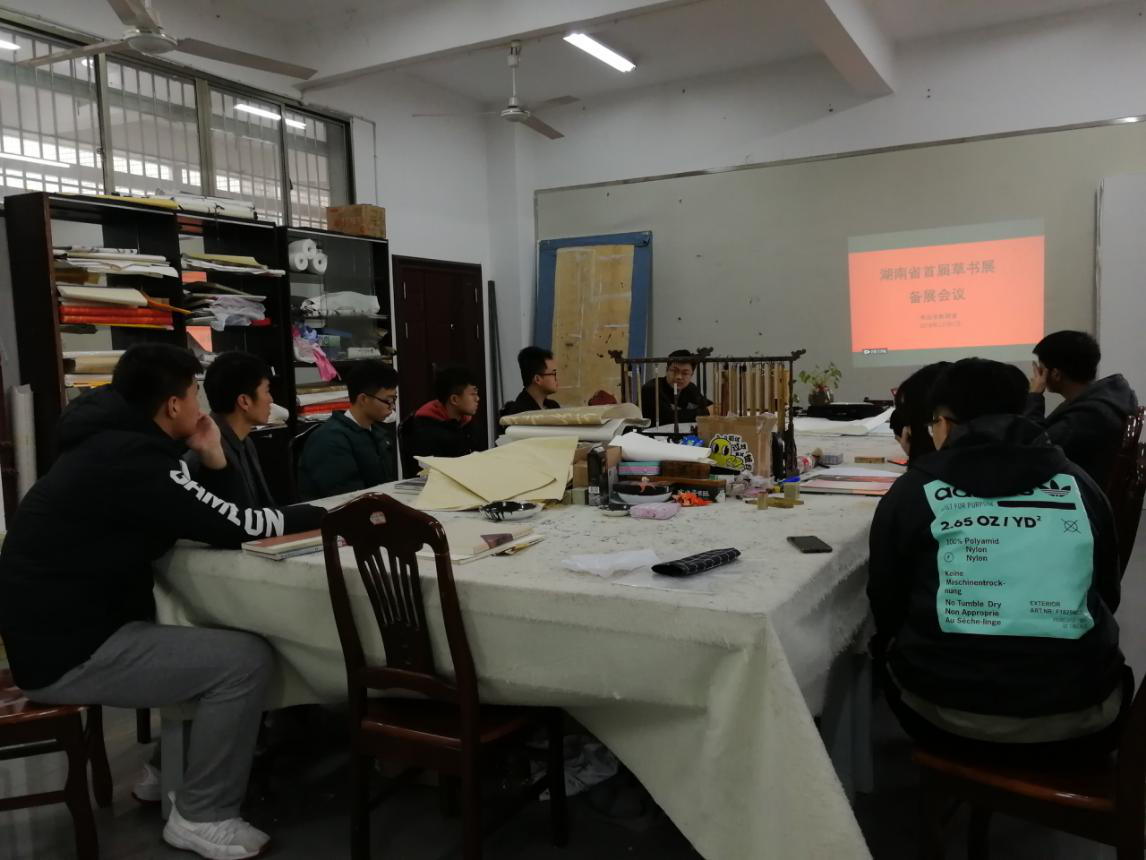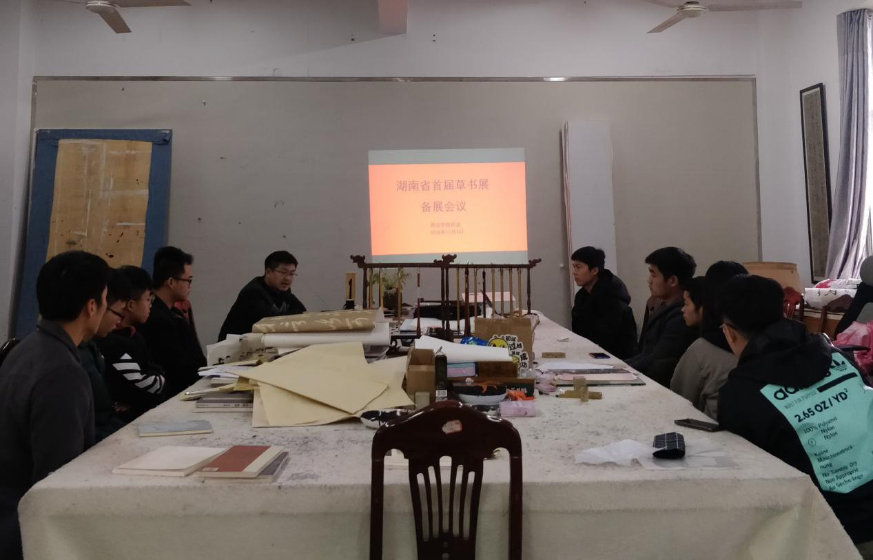12月5日,书法学教研室在213教研活动室召开“湖南省首届草书展”备展会议。书法学教师蒋全顺、贺文彬以及书法学专业学生代表参加会议。