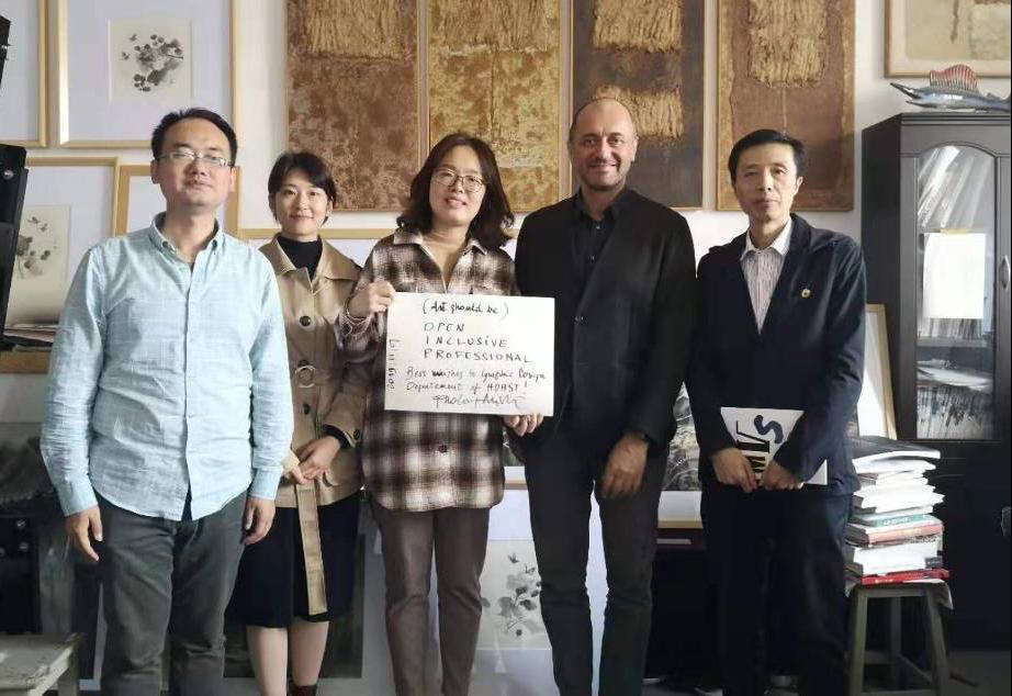 本次学术交流对于庞杂的品牌设计课程来说时间是短促的,但期间的讲学和设计活动加深了双方的了解和交流。同学们白天上课,晚上赶做设计方案。同学们的勤奋好学给帕里西教授留下了非常深刻的印象,帕里西教授全天的持续上课,尽管辛苦异常,但他表示同学们的全情投入令他很享受这个过程。帕里西教授对师生们的专业热情十分感谢,向院长陆序彦赠送了自己的最新著作以示感谢,在参观完视觉传达设计系后即兴题词,希望视觉传达专业越办越好!并邀请我院领导、老师明年访问意大利佛罗伦萨美院。