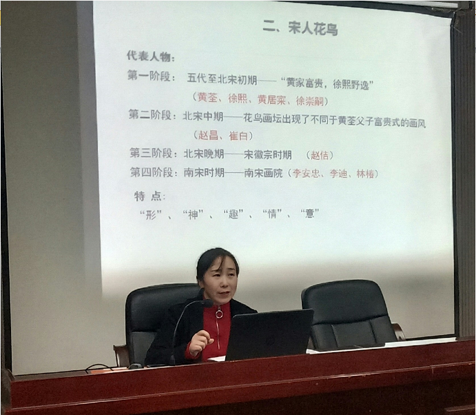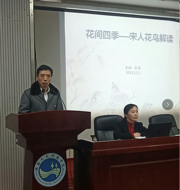 12月5日晚,美术学专业彭波副教授在逸美楼一楼报告厅为我院师生做了《花间四季——宋人花鸟解读》专题学术讲座。美术学全体师生听取了讲座。讲座由副院长陆序彦教授主持。