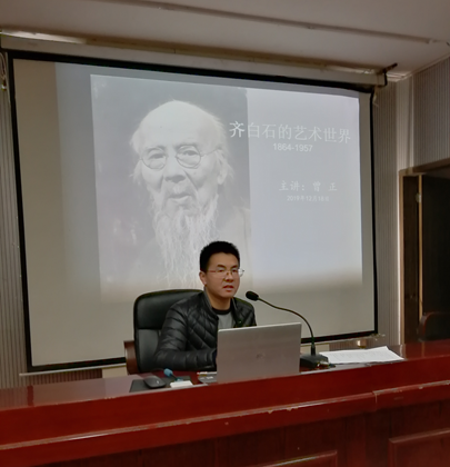 12月18日晚8点,美术学专业曾正老师在逸美楼一楼报告厅为我院师生做了《齐白石的艺术世界》专题学术讲座。美术学全体师生听取了讲座。讲座由副院长陆序彦教授主持。