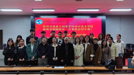 4月28日,在学校国际合作与交流中心主任黄敏的陪同下,意大利弗罗西诺内美术学院副院长帕纳奈利教授来我院讲学。视觉传达设计专业全体师生和环境设计专业部分师生参加了此次讲座。讲座由美术与设计学院副院长童玲主持。
