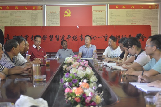 接着,院党总支委员、哲学博士刘风雪为长石村党员宣讲了习近平总书记“七.一” 重要讲话精神。刘博士结合长石村实际、从对不忘初心的解读、中国共产党95年所取得的成绩和不忘初心、继续前进必须牢牢把握的八个方面工作等方面进行了辅导宣讲。然后,书法学教工党支部书记易俊、美术学教工党支部书记杨竞成、分工会主席谭娟、书法学教工党支部党员蒋传存等各自谈了学习心得及对长石村精淮脱贫建言献策。