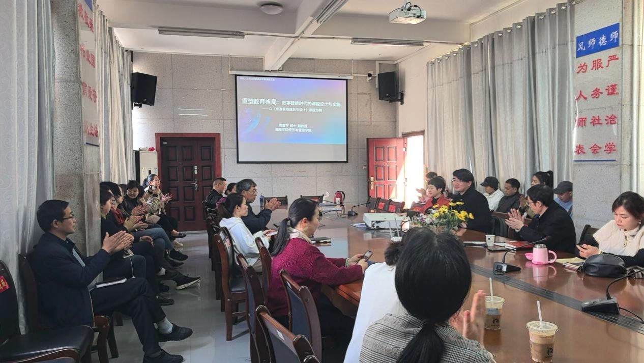 3月26日下午,学院设计学科联合校级“双一流”建设专业环境设计专业开展教研学术活动,邀请湘南学院经济与管理学院副教授周震宇博士在逸美楼216会议室为全院专任教师开展信息化教学培训,副院长贺平主持会议。