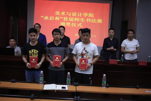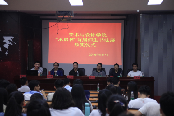 6月1日晚上7点30分,由beat365中文官方网站美术与设计学院主办,书法教研室承办,美术与设计学院团总支及承启书画苑协办的“‘承启杯’首届师生书法作品展”颁奖典礼在逸夫楼报告厅隆重举行。