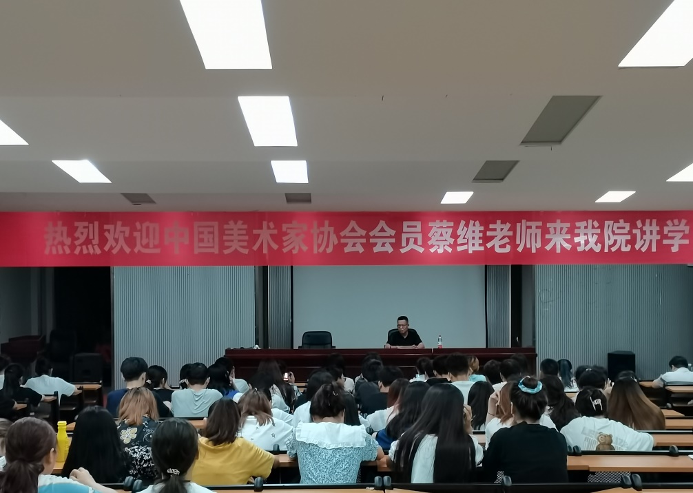 此次讲座蔡维围绕艺术人的家国情怀与社会责任,艺术与工作、生活,如何让艺术品发挥社会和经济效益,如何扬长避短让自己的艺术专长学以致用,为家庭、社会发光发热等方面,并结合自身经验为学生详细解说,学生受益匪浅。(图/文 美术学教研室)
