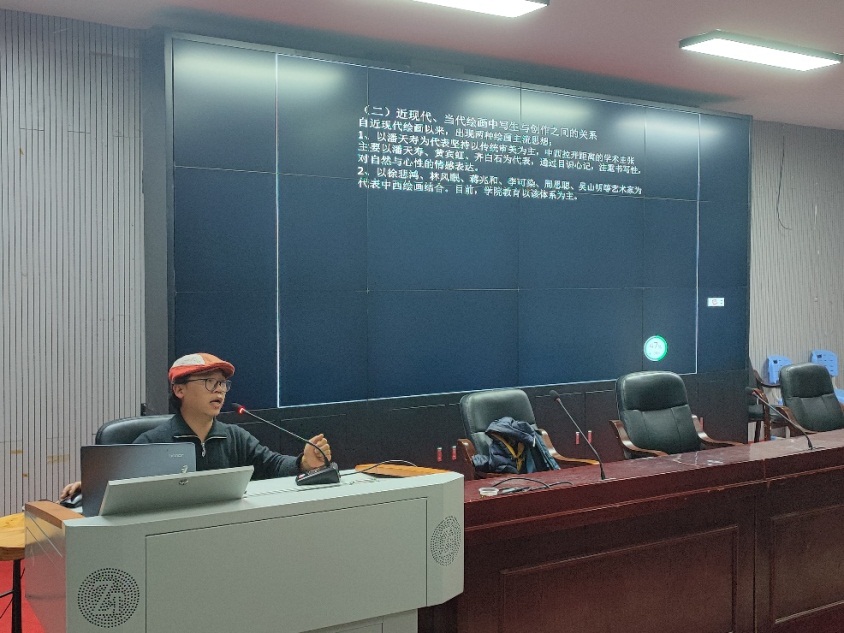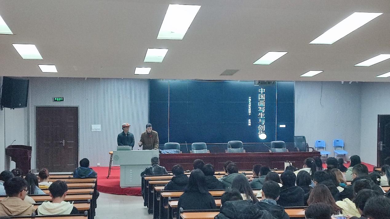 12月15日晚上,中国艺术研究院苏国强博士在逸夫楼一楼报告厅为美术与设计学院师生做“中国传统绘画中写生与创作”讲座,美术学专业部分师生聆听讲座。讲座由美术与设计学院院长陆序彦主持。