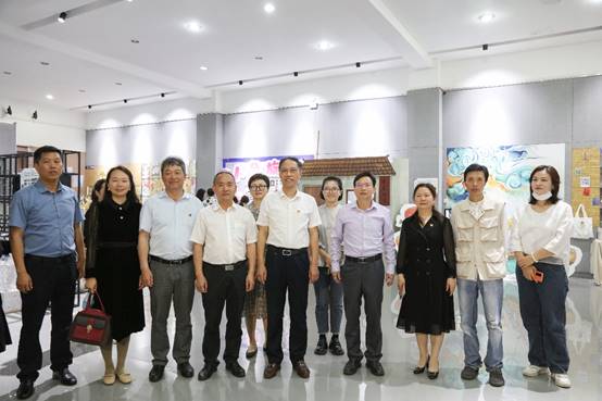 5月17日上午,校党委书记刘铁铭,党委委员、副校长陈志国,党委委员、副校长刘铁峰,党委委员、纪委书记凌艳平在党政办主任李玲军、宣传统战部常务副部长谢柳等陪同下来到逸美楼二楼展厅参观“起航”数字媒体艺术2023届毕业设计展,美术与设计学院领导班子及师生陪同参观。
