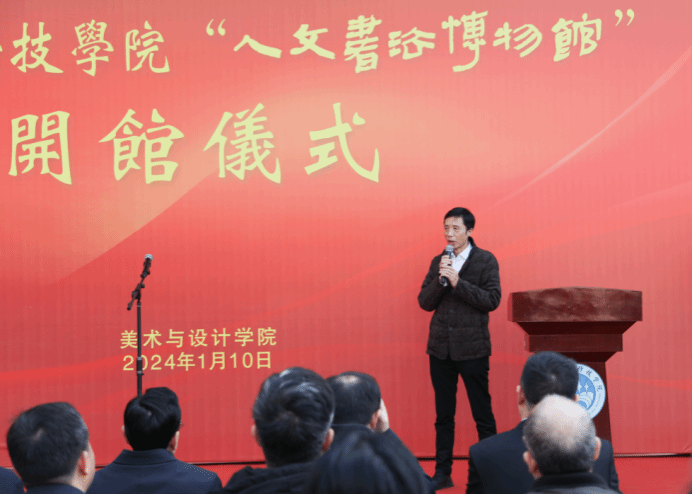 1月10日下午,beat365筹建已久的湖南省内第一个高校书法博物馆“人文书法博物馆”正式开馆。学校党委书记刘铁铭,党委副书记、校长盛明科,党委委员、副校长陈志国,党委委员、纪委书记凌艳平,副校长刘建勋和娄底市科技局党组书记、局长易俊,娄底市著名收藏家贺显清以及学校部分中层领导干部,美术与设计学院领导班子和书法学专业师生等100余人出席开馆仪式。开馆仪式由美术与设计学院院长陆序彦主持。