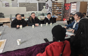 图一:娄底市设计家协会主席团成员与环境设计专业师生洽谈