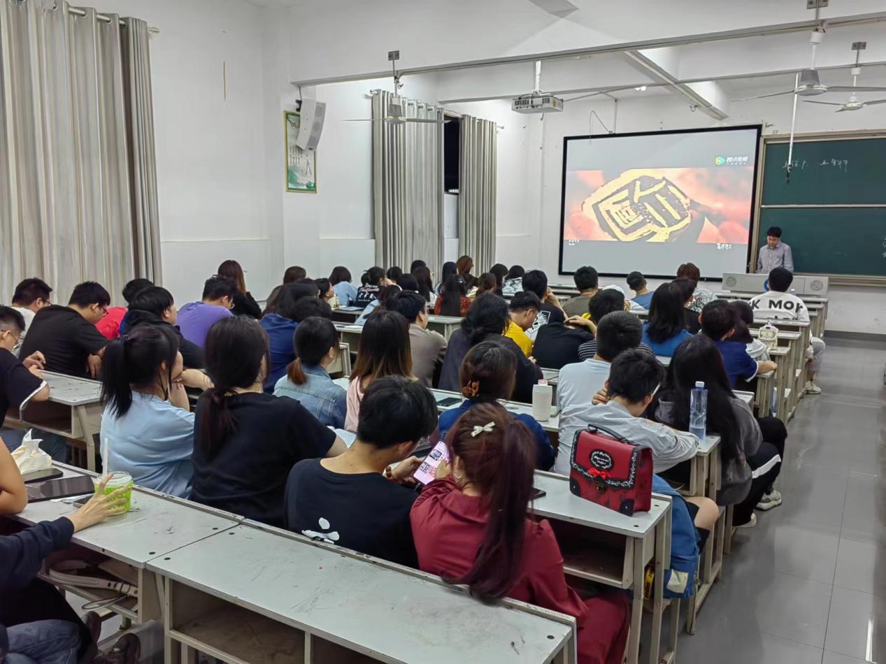 5月23日晚,书法学专业教师蒋全顺在逸夫楼311教室举办“陶瓷篆刻艺术”讲座,书法学专业部分师生聆听讲座。