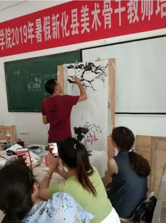 为了办好这期培训班,让学员们学有所获,美术与设计学院精心选派主讲教师与服务团队,既有教育管理经验丰富的教育专家、学校党委委员、副校长刘铁峰教授等,又有专业能力强的美术教授陆序彦、中国书法家协会会员易俊以及蒋秀召、谢雅强、刘剑峰、曾正、邹夫仁等一大批教学骨干。
