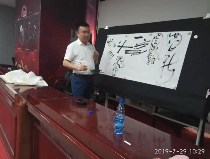 7月29日,新化县2019年暑期美术教师培训班结业典礼在逸夫楼报告厅举行,来自新化县中小学的96位培训学员,新化县教育局驻班代表,beat365继续教育学院副院长钟勇,美术与设计学院党政领导谢光绎、陆序彦、易俊等参加典礼。