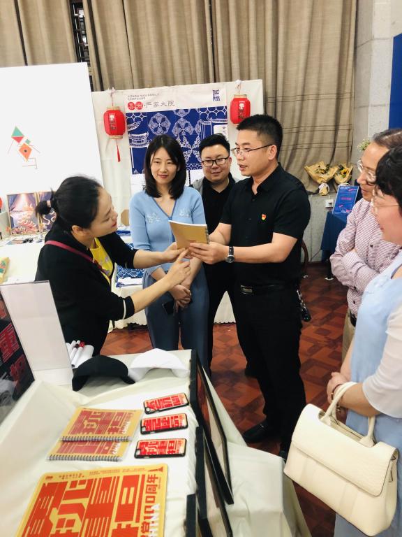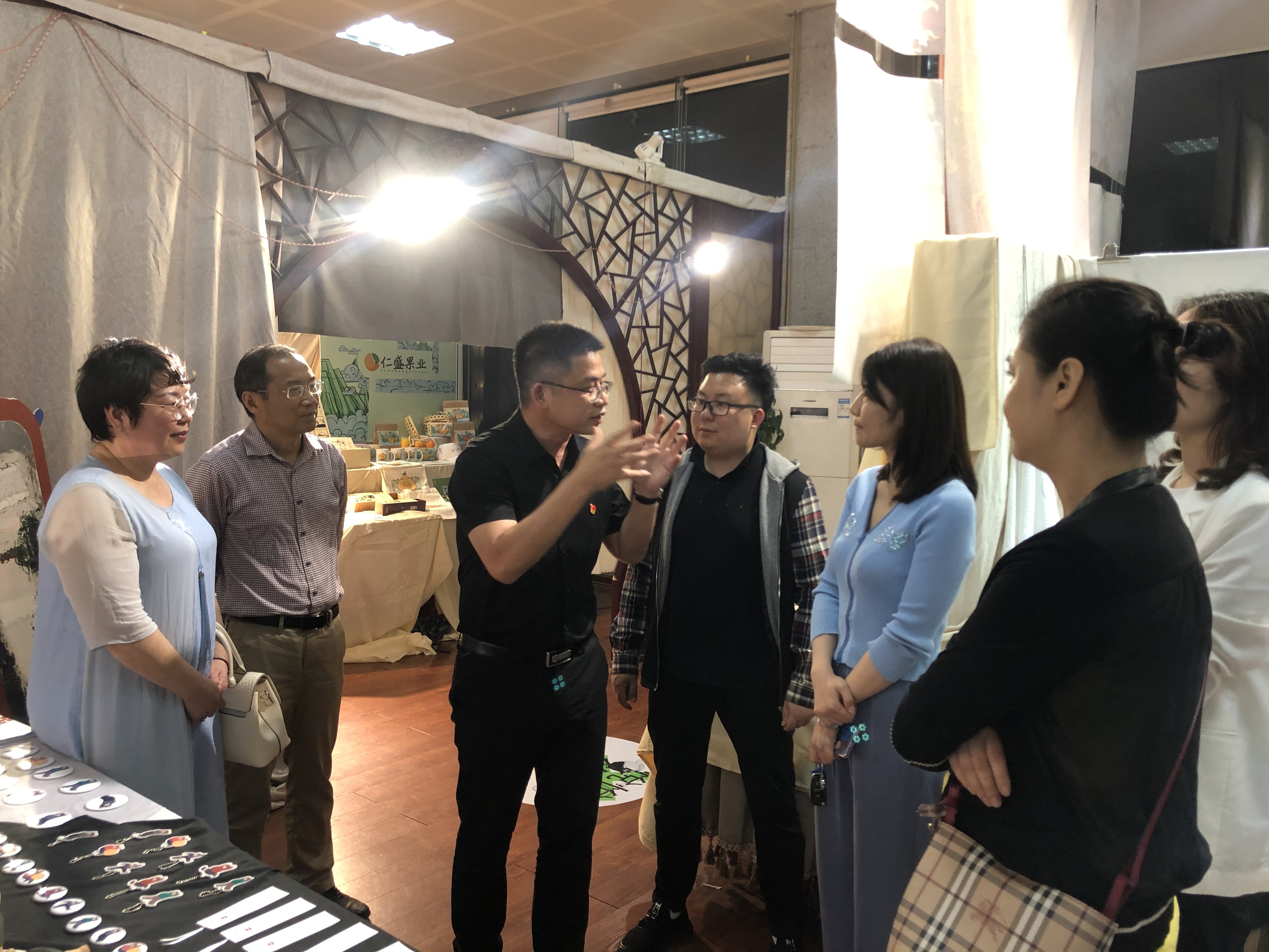 在一个多小时的参观中,童玲对展厅的作品逐一进行了详细的介绍,彭育晚对现场展示的多套品牌、文创、视频、VR、全息投影等优秀毕业作品产生了极大的兴趣,尤其是对针对油溪桥村设计的几组产品包装和乡村振兴规划赞不绝口。彭育晚高度赞扬了美术与设计学院师生的专业水平和能力,在对美术与设计学院产教融合的成果给予了充分肯定的同时也表达了热切期盼beat365为油溪桥村实现乡村振兴伟大目标而出谋划策的意愿,希望今后与我院在品牌和产品包装设计等方面有更广泛的合作。