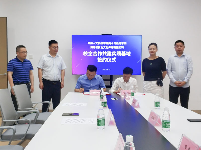 611日上午,美术与设计学院和湖南省优合文化传媒有限公司签订了共建实习实践基地的协议,并即将开展一系列校企合作课程。