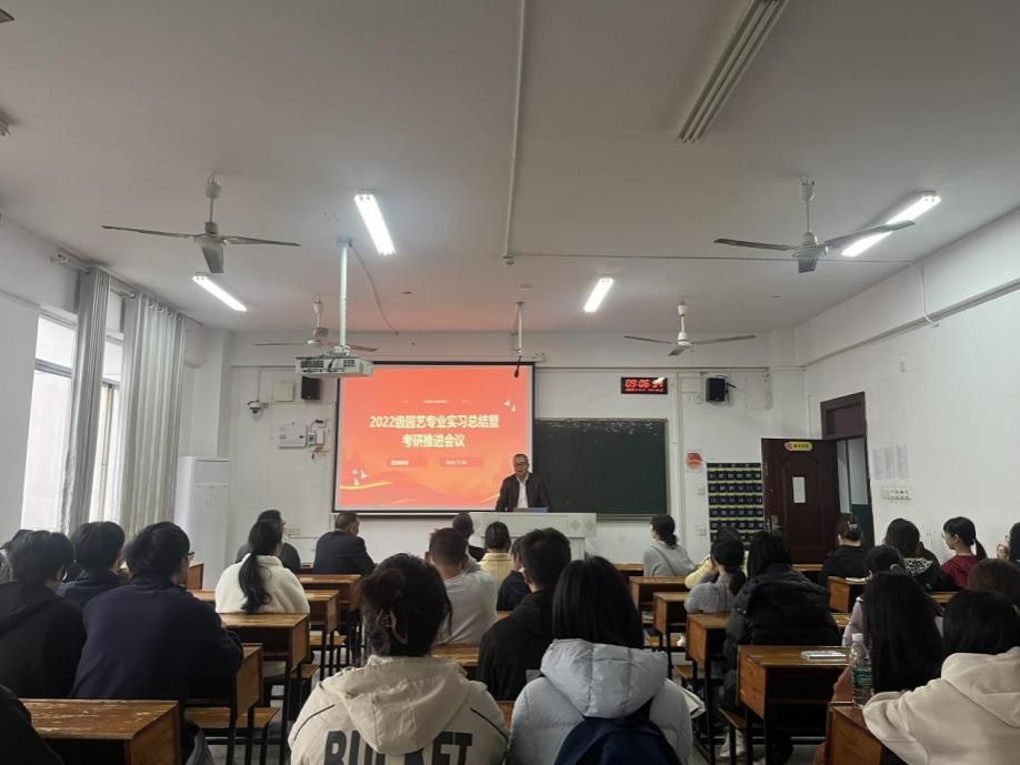 2025年11月4日上午,农生院园艺专业在致远楼415室举行了2022实习小结及考研工作推进会,副院长刘泽发、部分实习带队老师及2022级园艺专业全体学生参加此次会议。会议由园艺专业教研室主任龚意辉博士主持。