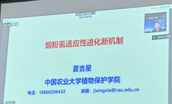 来自中国农科院的国家优青基金获得者(2020年)、中国青年科技奖获得者(2022年)、博士生导师郭兆刚研究员为论坛做了题为“小菜蛾对Bt杀虫蛋白产生抗性的分子机制”的主旨报告。报告从小菜蛾对Bt Cry1Ac毒素的抗性起源、传统靶标受体抗性等切入,系统讲解了过去20多年小菜蛾对Bt Cry1Ac抗性的研究进展,并结合自身10余年的研究经验以及近期的研究成果,揭示了小菜蛾不同中肠受体间的功能冗余性和分子互补作用模式,系统阐述了昆虫激素水平升高与串扰可以激活MAPK信号途径负调控多个中肠受体基因差异表达,从而导致了小菜蛾对Bt Cry1Ac的高抗性,为深入理解昆虫Bt抗性治理提供了重要的理论基础。之后,中国农业大学植物保护学院博士生导师夏吉星教授做了题为“烟粉虱适应性进化新机制”的主旨报告,报告阐述了烟粉虱通过水平基因转移的方式“劫持”了植物中酚苷丙二酰转移酶基因BtPMaT1用以代谢植物毒素,从而形成烟粉虱广泛寄主适应性的分子机制。为我们揭示了昆虫如何利用水平转移基因来克服宿主的防御机制,为探索昆虫适应性进化规律开辟了新的视角,也为新一代靶标基因导向的烟粉虱田间精准绿色防控技术研发提供全新思路。来自湖南大学的彭琼博士、湖南省农科院的李祖任博士、以及beat365郭开发博士、郑慧新博士和王双辉博士等分别作了题为野燕麦中除草剂代谢抗性基因的挖掘、植物源羊脂酸的抑草靶标活性挖掘与利用、抗黄精根腐病生防菌的筛选和菌肥研制、烟粉虱田间危害现状研究、EGCG通过调控内质网应激降低镉致秀丽线虫的发育毒性的学术报告。参与师生对学术报告进行了提问交流。
