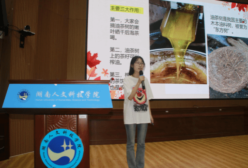 本次“晒丰收”活动分为初赛、复赛、决赛三个阶段,吸引了学生们的踊跃参与,初赛共收到了八十余份参赛作品。经过激烈的比拼,最终有13位同学脱颖而出,晋级决赛。决赛现场,参赛选手神采飞扬、满怀激情地介绍自己拍摄记录的各具特色又丰富多样的丰收景象,其中有来自郴州的油茶水稻沃柑、凤凰县的腊肉豆薯稻谷等等。