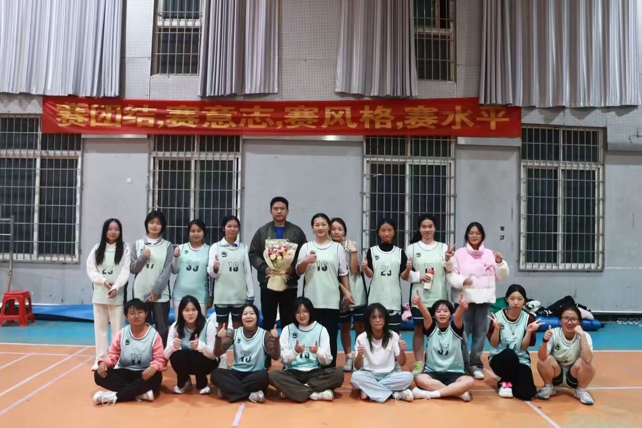 赛场上,球员们积极拼抢、默契配合,灵活运球、精准投篮、顽强防守的身影处处彰显着朝气与拼劲。场边师生热情助威,呐喊声与喝彩声此起彼伏,共同营造出热烈昂扬的赛场氛围。