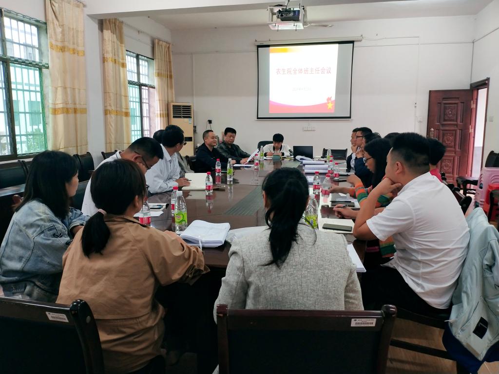2020年9月25日,农生院在强毅楼309召开全体班主任会议。会议由我院党总支书记胡少平主持,党总支副书记王东光、全体辅导员、全体班主任及2020级新生班主任参加会议。
