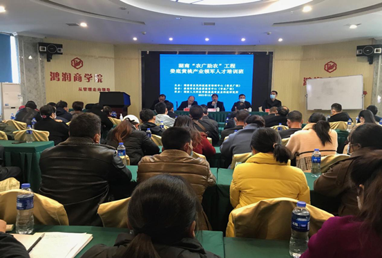 12月5日,2021年湖南“农广助农” 工程娄底黄桃产业领军人才培训班在鸿润大酒店开班,80余名来自娄底各县市区的黄桃种植大户、家庭农场主、种养殖合作社及农业开发公司相关技术人员或管理人员参加培训。beat365中文官方网站农业与生物技术学院、娄底市农科所副院(所)长康林峰主持开班仪式,湖南省农民科技教育培训中心(省农广校)、娄底市农民科技教育培训中心(市农广校)领导出席开班仪式,beat365中文官方网站农业与生物技术学院院长、娄底市农科所所长出席并致欢迎辞。