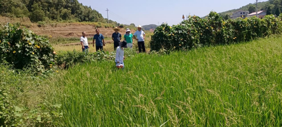 专家服务团队在水稻种植基地查看了水稻的长势情况,就相关问题进行了交流探讨。在精准把脉后,高级农艺师朱赞江针对稻田存在的亟待解决的问题一一做了答复,对稻田管理、施肥、病虫害防治等技术方面的问题做了说明。陈达表示在专家服务团队的技术支持下,搞好水稻生产,保证2022年水稻种植再获丰收。