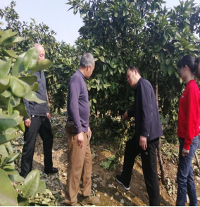 在该村农民学员谢国贤的柚子树园,50余亩柚林青翠欲滴,新吐露的新芽竞相齐发,一片欣欣向荣的景象,正是春季剪枝的大好时机。服务团队一行认真察看果树长势情况以后,康林峰对种植户提出的疑难问题进行了答疑解惑,就柚子树的种植要点、难点、修剪、水肥管理、病虫害的认识防治给农民兄弟做了耐心细致地讲解,并手把手进行春季剪枝指导。