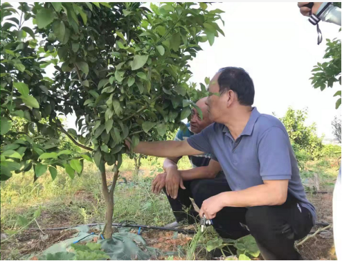 8月31号下午,农生院副院长(农科所副、市农学会副理事长、推广研究员康林峰率技术团队成员冒着酷暑涟源祥兴农业科技有限公司进行金秋砂糖橘大棚育苗与幼树整形修剪技术指导。
