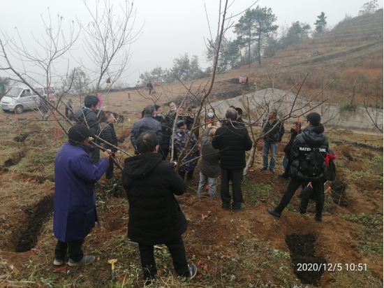 12月5日,调研位于水洞底镇的娄底市凤冠农林专业合作社,听取了总经理曾如初对合作社的基本情况介绍。学员们爬山越岭参观了经果林园区。在经果林园区,朱赞江就柑橘、黄桃等果树的种植要点、难点、病虫害的认识防治和学员们进行了深入地探讨与交流,并对黄桃进行了冬季修剪、对柑橘进行了多种嫁接操作示范。