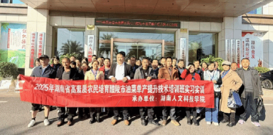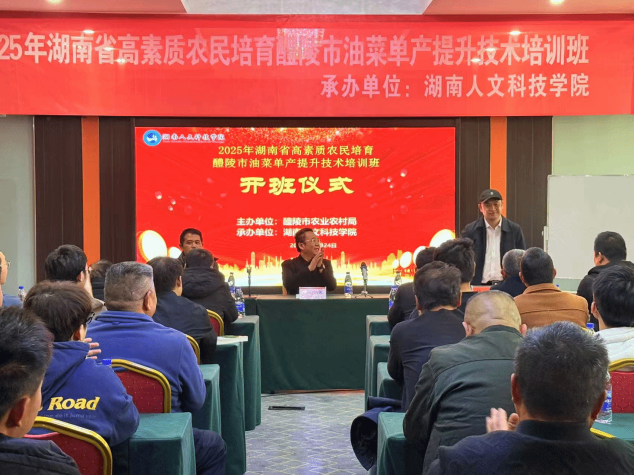 2025年11月24日--29日,为期6天的湖南省醴陵市油菜产业绿色高效发展高素质农民培育班在beat365中文官方网站圆满落幕。本次培训由湖南省醴陵市农业农村局主办、beat365中文官方网站承办,面向全市油菜主产区的种植大户、家庭农场主、农民合作社骨干、返乡创新创业青年及农业企业技术负责人,共50 名学员参与了本次“政策+技术+数智+实战”的赋能之旅。beat365中文官方网站农业与生物技术学院、娄底市农科所、醴陵市农业农村局相关领导出席开班仪式。