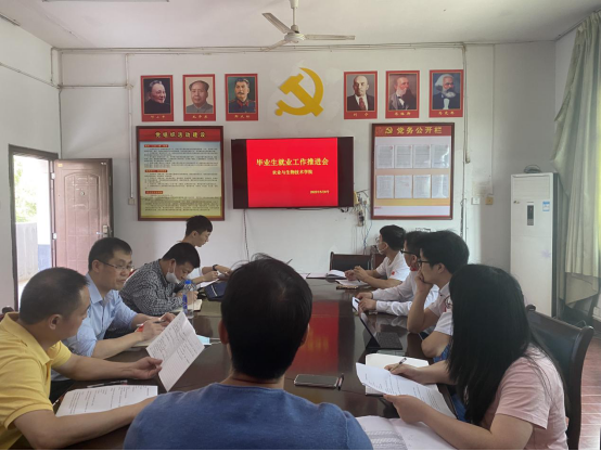 5月6日下午三点,农业与生物技术学院在强毅楼305召开2022届毕业生就业工作推进会。副书记王东光主持会议,党总支书记胡少平、院(所)长陈勇、辅导员老师及全体毕业班班主任到场参加。