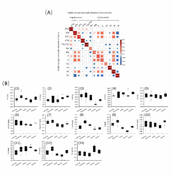 本研究调查中国不同省份采集的樱桃样品的稳定同位素与多元素特征,分析其与灌溉水和耕种土壤的相关性及产地微气候调控同位素分馏及元素富集机制。构建我国樱桃产地特征数据库,建立了非监督与监督两类化学计量学分类判别模型,实现中国不同省份樱桃产品的溯源,判别精度超90.9%。能够确保我国樱桃原产地标签标识真实性,对维护市场诚信和消费者权益具有重要意义。