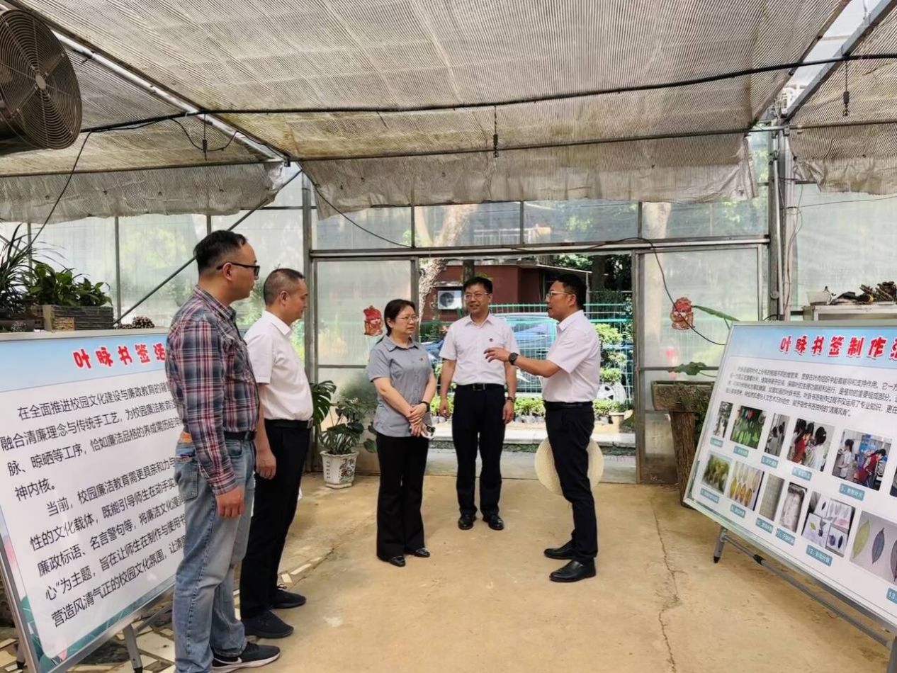 5月13日下午,校党委委员、纪委书记凌艳平赴农生院(农科所)校内基地连栋大棚,实地指导“叶脉镌廉意 书签寄洁心”——清廉校园文化建设之叶脉书签制作主题党日活动,院(所)党总支书记邹坤、院(所)长向国红、副书记王东光等陪同,学生党支部书记、师生党员代表、特殊困难学生代表等30余人参加。