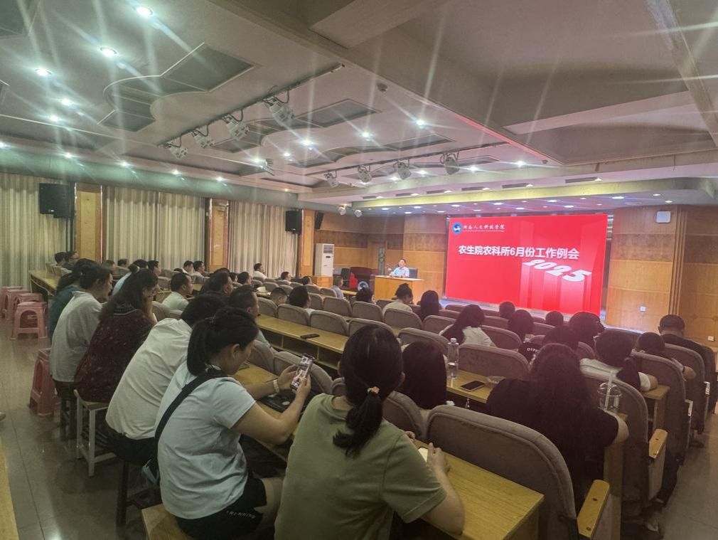 6月3日,农生院(农科所)于养根楼会议室举行了6月份工作例会,全面回顾了5月份的工作成果,并对下一阶段的关键任务进行了部署。会议由党总支书记邹坤主持,院(所)长向国红、副书记王东光、副院长刘泽发、孟桂元、副院长兼副所长朱赞江及全体教职工参会。