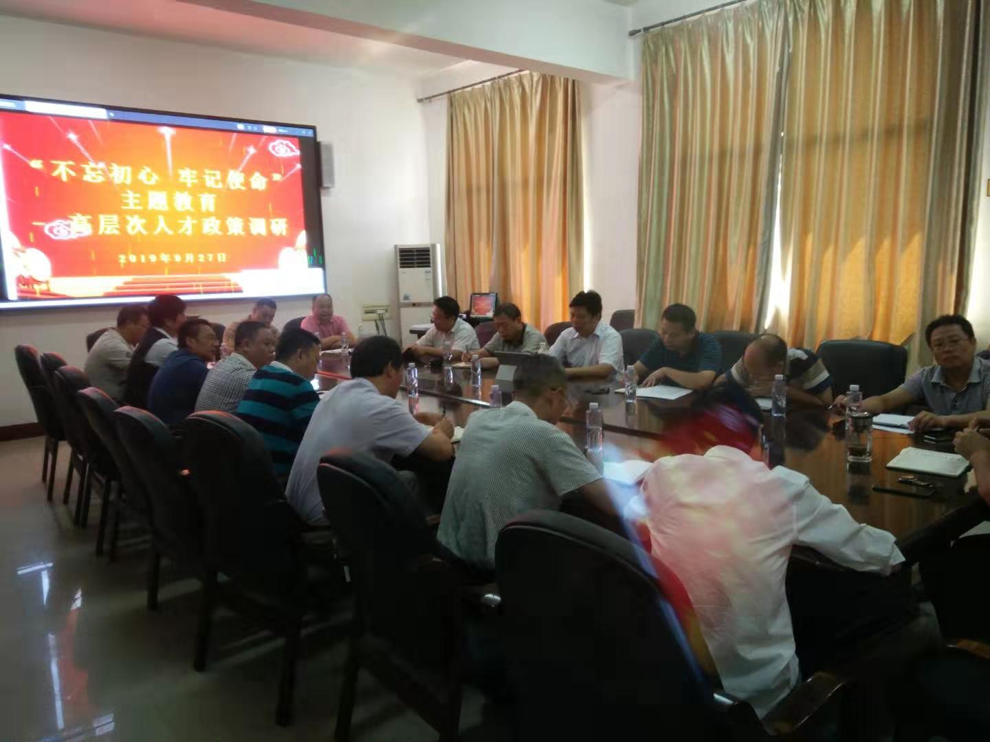 2019年9月27日,刘和云校长在百全楼211室开展“不忘初心 牢记使命”主题教育“高层次人才政策”调研,人事处处长及各教学单位相关负责人参加会议,并积极讨论发言。--人事处供稿