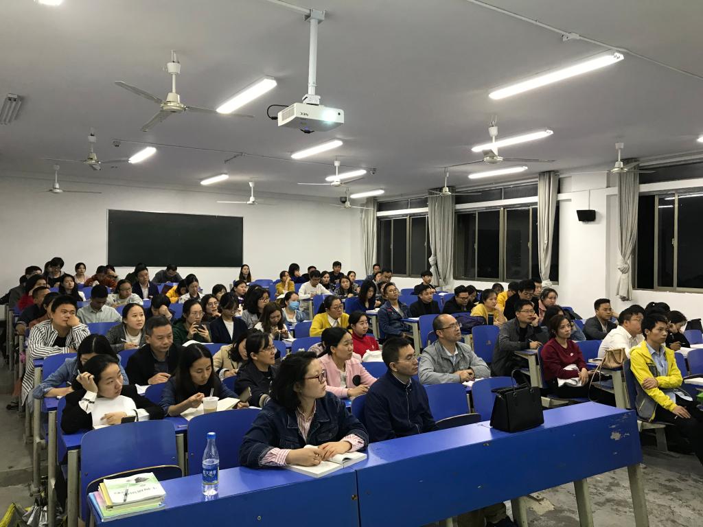 李香华一行到校后,直接进入培训教室听取了《高等教育学》课堂教学并对学员发表讲话。2019年全省高校教师岗前培训考试将于11月9-10日在湖南师大集中举行,李香华主任介绍了今年考试的新情况,特别强调了考试的严肃性与纪律要求,希望全体新学员要认真学习,以良好的成绩圆满完成岗前培训。