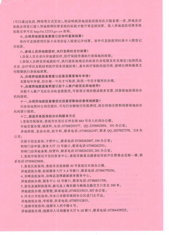 娄底市异地就医住院医疗费用直接结算宣传资料