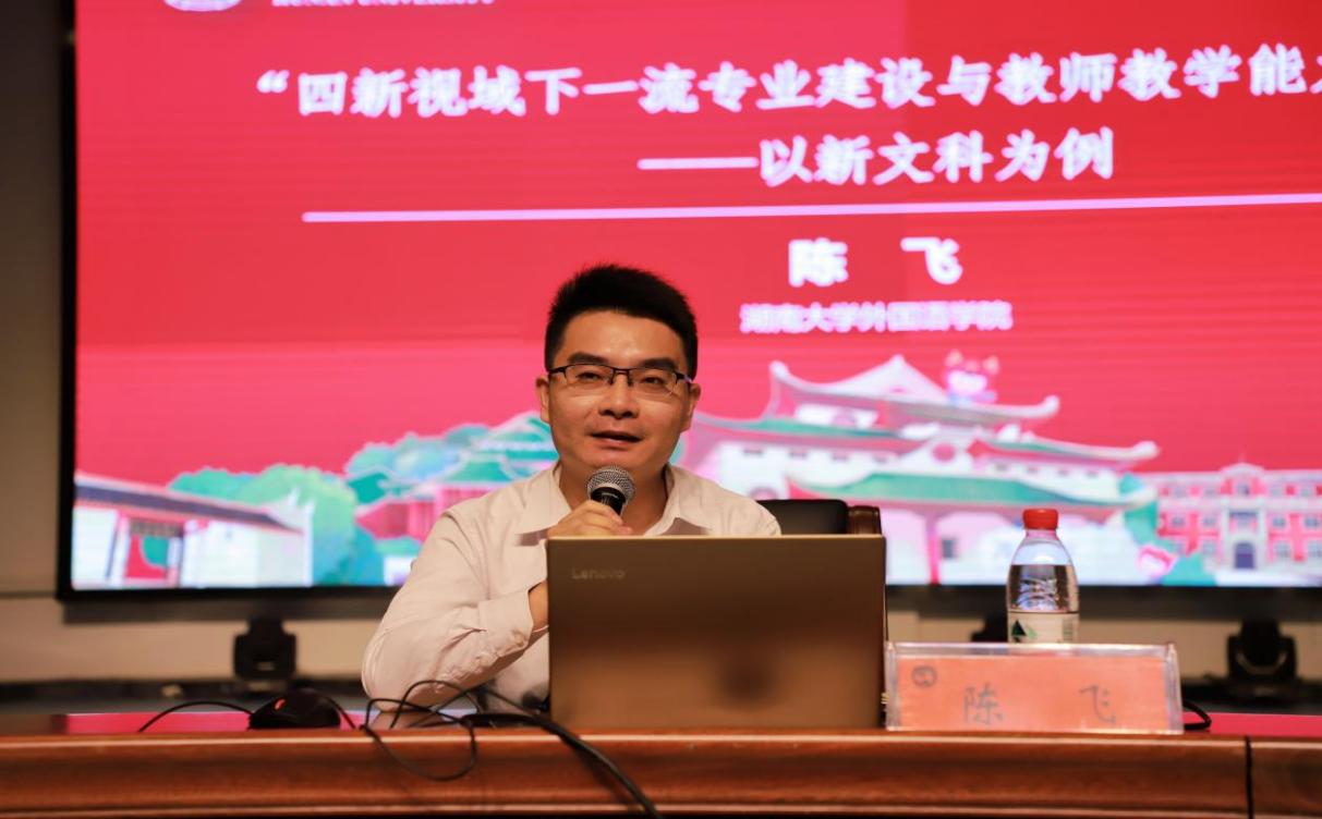 湖南大学陈飞教授、博导做主题为““四新视域下一流专业建设与教师教学能力提升——以新文科为例”的专题讲座。以湖南大学开展“双一流”建设、新文科建设、教师教学能力提升工作为例,为大家生动阐述了“双一流”建设的内涵与建设经验、开展教师信息化教学建设、课程思政建设方面的成功经验。