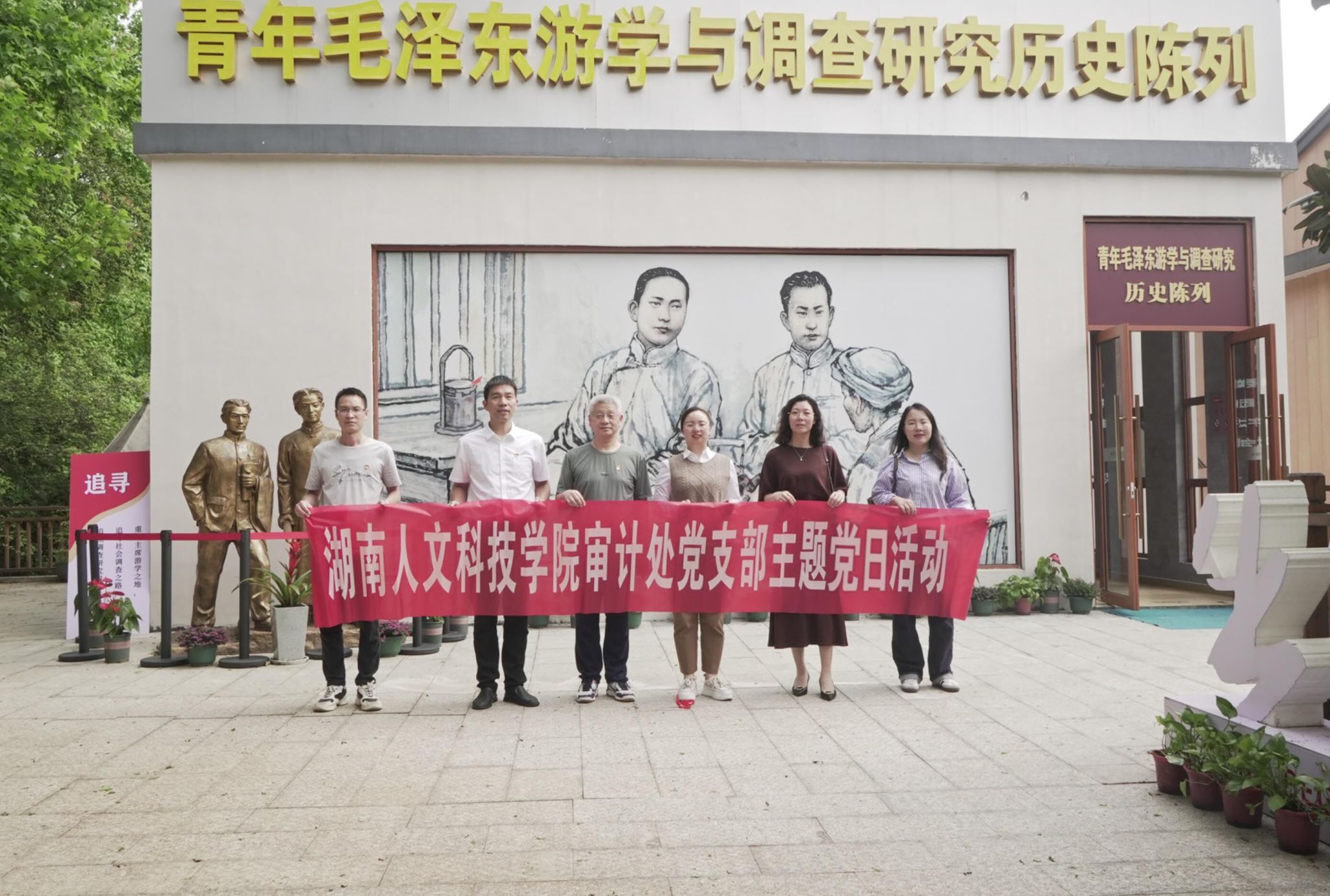 为深入学习党的二十大精神,结合党纪学习教育,2024年4月23日下午,审计处党支部组织审计处和国际交流处的全体党员、预备党员、入党积极分子赴“茶园—毛泽东游学目的地”开展党性教育活动。