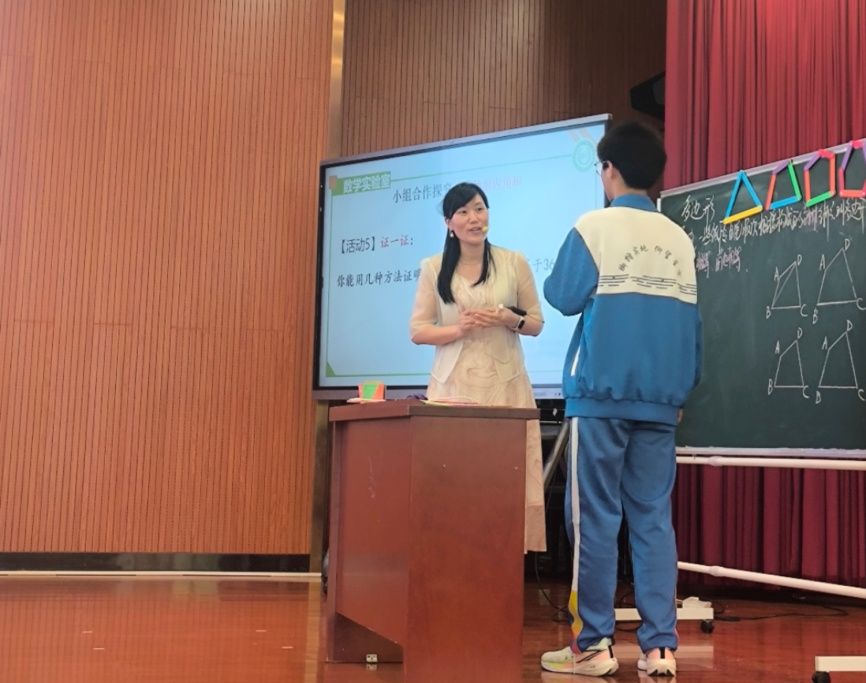 29 日下午,研修活动的“课堂实践”环节在娄底市第一中学附属星星中学精彩展开。周秋香、周新元两位资深教师分别精心准备并展示了《多边形》和《二次函数中线段最值问题》两节示范课。他们的课堂生动有趣、教学方法灵活多样,充分展现了初中数学教学的高超技艺与独特魅力。随后,2021 级数学师范生李芳菲也进行了片段教学展示,她以扎实的专业知识和良好的教学素养,赢得了在场人员的阵阵掌声。邹泰山对示范课及片段教学进行了深度点评,他从教学设计、课堂互动、知识传授等多个维度,给予了中肯的评价和专业的建议,为参培教师和师范生们提供了极具价值的教学参考。