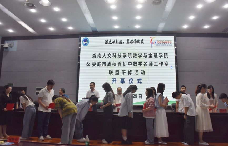 开幕式上,还举行了意义非凡的“师徒结对”仪式。娄底市周秋香初中数学名师工作室成员与数学与应用数学专业 2022 级师范生正式结成师徒对子。未来,他们将以“传、帮、带”的传统模式为纽带,紧密合作,将初中数学教育教学理论与实践深度融合,助力师范生们在专业成长的道路上稳步前行,为培养更多优秀的数学教育人才奠定坚实基础。