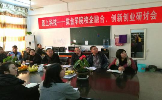 2016年11月9日,数学与金融学院特邀请2010级知名校友,深圳原上科技有限公司的创始人——张先华,来我院召开了“原上科技——数金学院校企融合、创新创业研讨会”,并邀请了创新创业学院彭晓华院长、谢柳书记到场指导工作,与会成员还有数金院的陈国华院长、周兰副书记、李炳君副院长以及部分专业负责人和老师代表,并挑选了部分同学代表参与了本次研讨会。