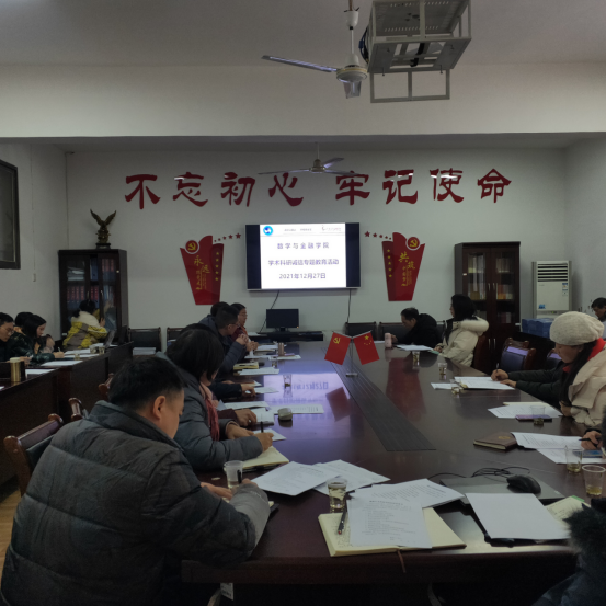12月27日下午,数学与金融学院学术科研诚信专题教育活动在学而楼203举行。活动由副院长龙志文主持,其他院领导和全体教职工参加。