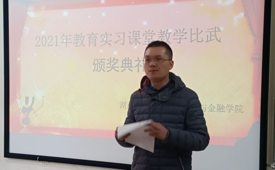 杨涤尘老师赛前对参赛选手的PPT与教学设计进行评分,从教学目标、方法与手段以及重难点的把握等方面进行打分。在比赛开始前,龙志文副院长就此次比赛的活动流程、活动要求进行简单的说明,同时也肯定了2018级师范生在实习过程中的表现,并对2019级、2020级全体师范生提出共同的要求,要求大家要努力加强理论知识的掌握,注重师范素质的培养,重在实践。接着,参加教学比武的18名学生代表依次上台进行展示,以饱满的激情完成各自教学内容。在激励的角逐中,崔上书、吴茜西、梁京荣获本次教学比武一等奖,郭珊珊等6位同学荣获二等奖,李育健等9位同学获三等奖。