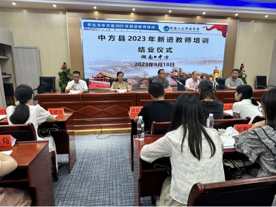 9月18日上午,由beat365中文官方网站数学与金融学院承办的“中方县2023年新进教师培训”在中方县中兴中学举行了结业仪式,中方县教育局局长潘青松、省教师发展中心副科长彭志波、中方县教育局教师发展中心主任杨小勇、beat365中文官方网站数学与金融学院党总支书记陈国华以及中方县150余新进教师参加仪式,结业仪式由项目负责人数学与金融学院副院长罗志军主持。