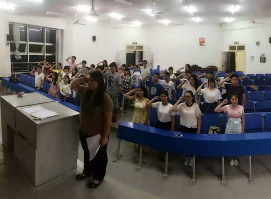 最后奏国歌,全体师生党员在国歌结束后拍照留念,数学与金融学院新党员入党宣誓仪式圆满结束。