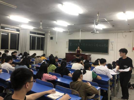 2019年5月30日19:30,数学与金融学院在致远楼412教室举行第25期入党积极分子培训班结业考试,我院共85名学生入党积极分子参加考试,考试由数学与金融学院党总支委员、学生第一党支部书记刘珊君及学生党支部委员组织进行。