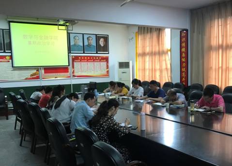 8月5日下午,数学与金融学院在若谷楼205会议室开展了暑期集中政治学习,此次学习由学院党总支书记阳立新主持,党政领导班子成员及全体党支部书记参与学习。