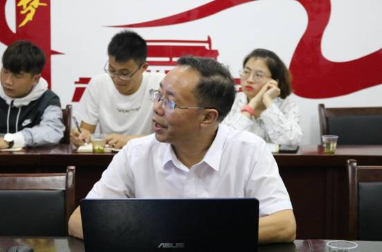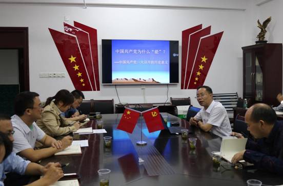 2019年10月9日,马克思主义学院党总支书记游训龙在致远楼416党员活动室,以“中国共产党为什么能”为主题,给数学与金融学院全体师生党员上了一堂生动的党课。